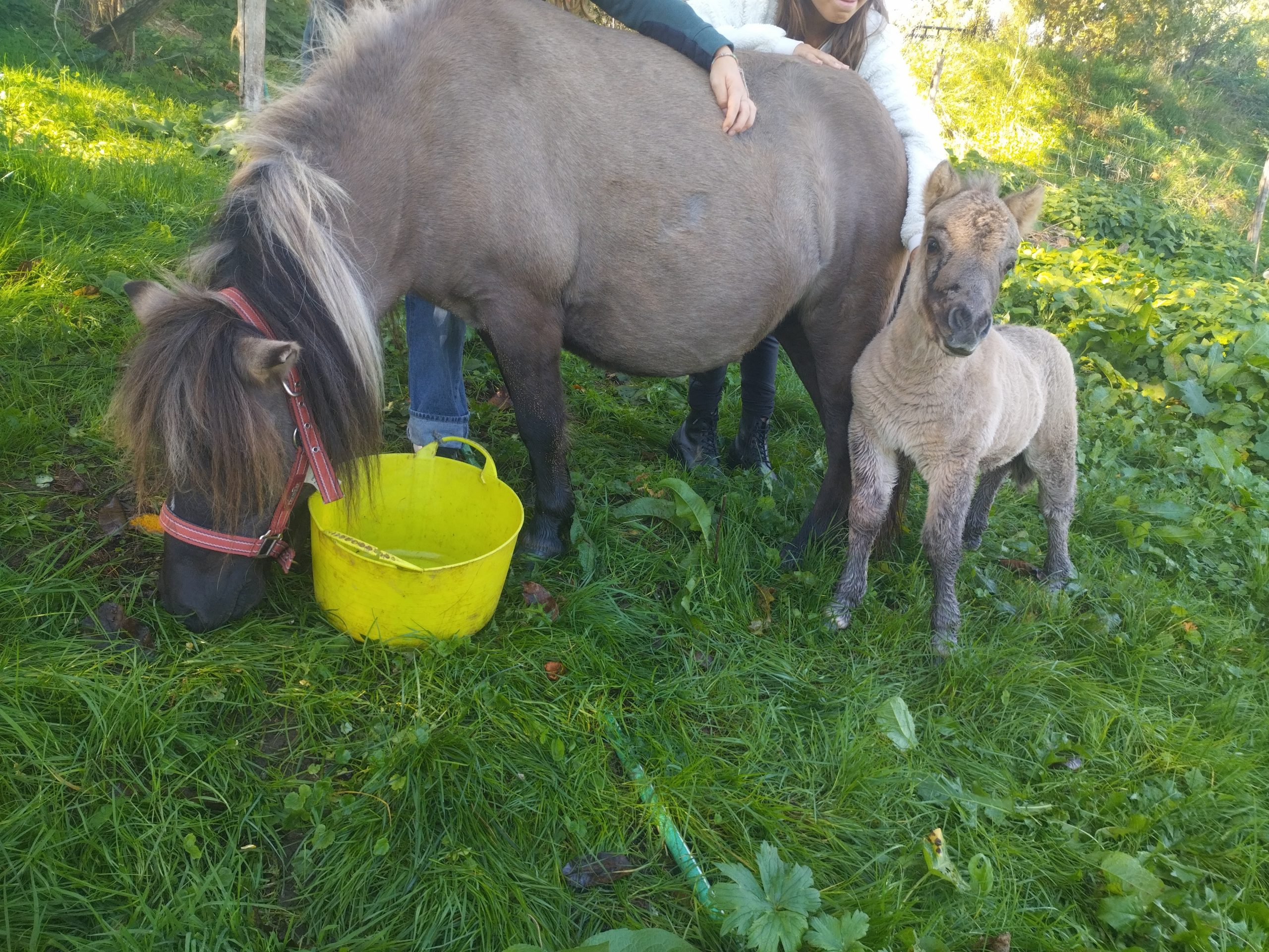 Arrêt de l'élevage Fjord, Konik, Dartmoor. Tous nos chevaux sont produits en pleine nature et éduqués avec des méthodes éthologiques. Calèche handi pour personnes handicapées en fauteuils roulants..