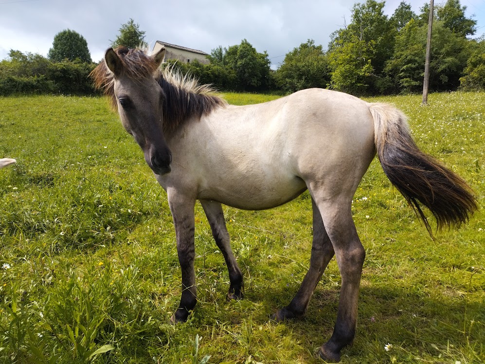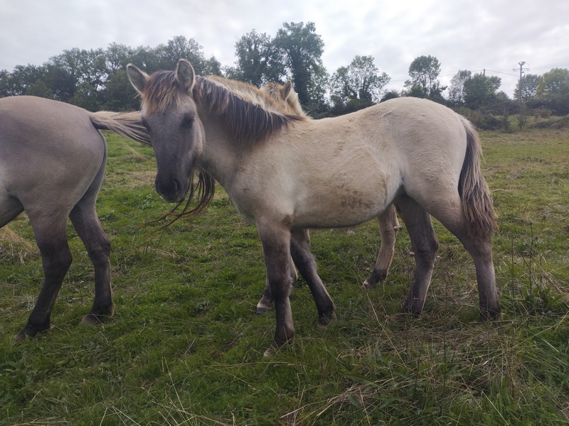 Nous faisons de la sélection génétique pour les chevaux de couleur. Chaque année nous produisons des poulains et des pouliches Grullo : Fjord X Konik, pur Fjord.